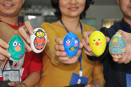 五月五日,立夏。一場(chǎng)生動(dòng)有趣的畫蛋比賽在總公司辦公區(qū)舉行。分別來(lái)自各部門的十多名參賽選手,各人領(lǐng)取一只白色大鵝蛋,用公司提供的水彩筆在蛋上現(xiàn)場(chǎng)作創(chuàng)意畫。現(xiàn)場(chǎng)還邀約員工20名前來(lái)觀摩選評(píng)。通過(guò)民主評(píng)選,最終選出了五只創(chuàng)意作品蛋,并頒發(fā)了精美禮品。