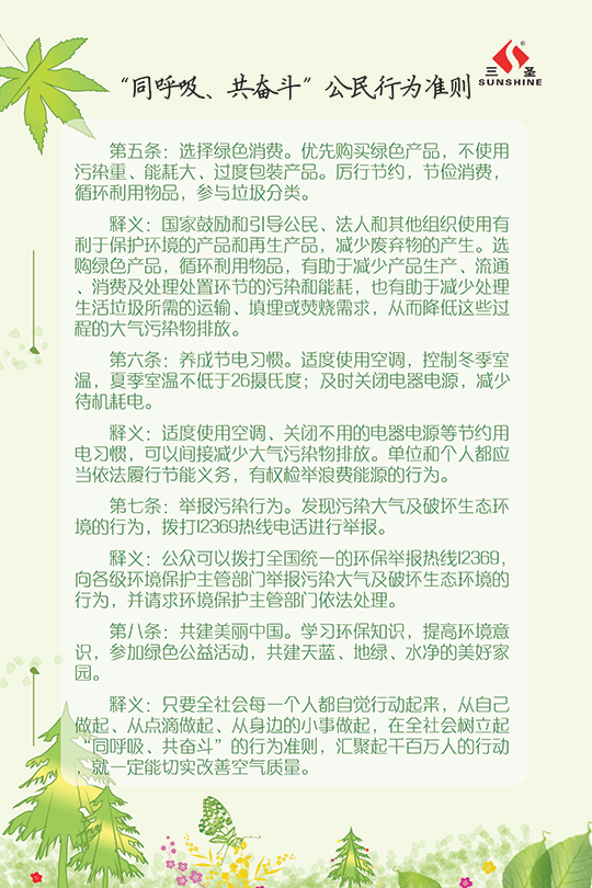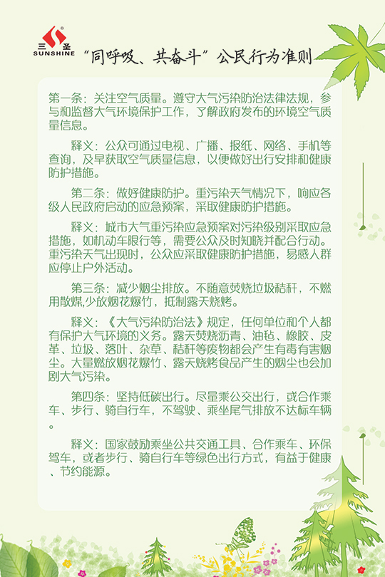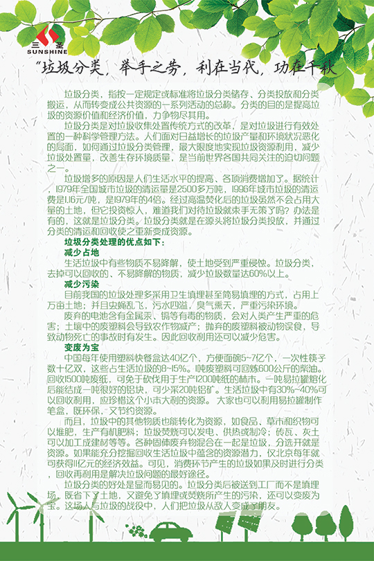 今年“三圣環(huán)保日”的主題為“三圣助力大環(huán)保,員工踐行小環(huán)?!?,我們的口號是:“踐行環(huán)保?從我們身邊的小事做起”。