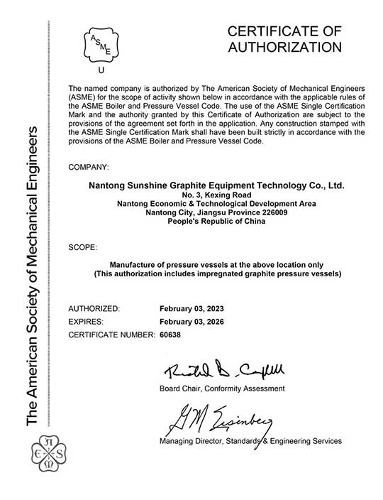 實(shí)力見證榮耀,南通三圣石墨設(shè)備科技股份有限公司將以此次獲得ASME “U”鋼印認(rèn)證為新的起點(diǎn),繼續(xù)書寫行業(yè)傳奇,為全球客戶提供更優(yōu)質(zhì)的產(chǎn)品和服務(wù)!