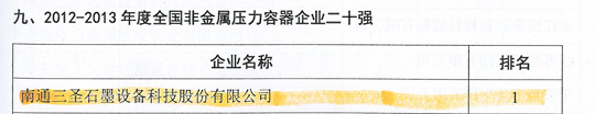 在剛剛閉幕的第五屆中國國際腐蝕控制大會(huì)上,南通三圣石墨設(shè)備科技股份有限公司憑借其優(yōu)異的業(yè)績榮登三大榜單,分別是:"2012-2013年度全國防腐蝕行業(yè)二十強(qiáng)企業(yè)"(排名第7位);"2012-2013年度全國非金屬壓力容器企業(yè)二十強(qiáng)"(排名第1位);"2012-2013年度全國防腐蝕行業(yè)外貿(mào)出口企業(yè)二十強(qiáng)"(排名第6位)。