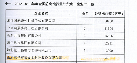 三圣成為行業(yè)內(nèi)同時(shí)榮登 “防腐蝕行業(yè)二十強(qiáng)”、“非金屬壓力容器企業(yè)二十強(qiáng)”、“防腐蝕行業(yè)外貿(mào)出口二十強(qiáng)”三大榜單的企業(yè)